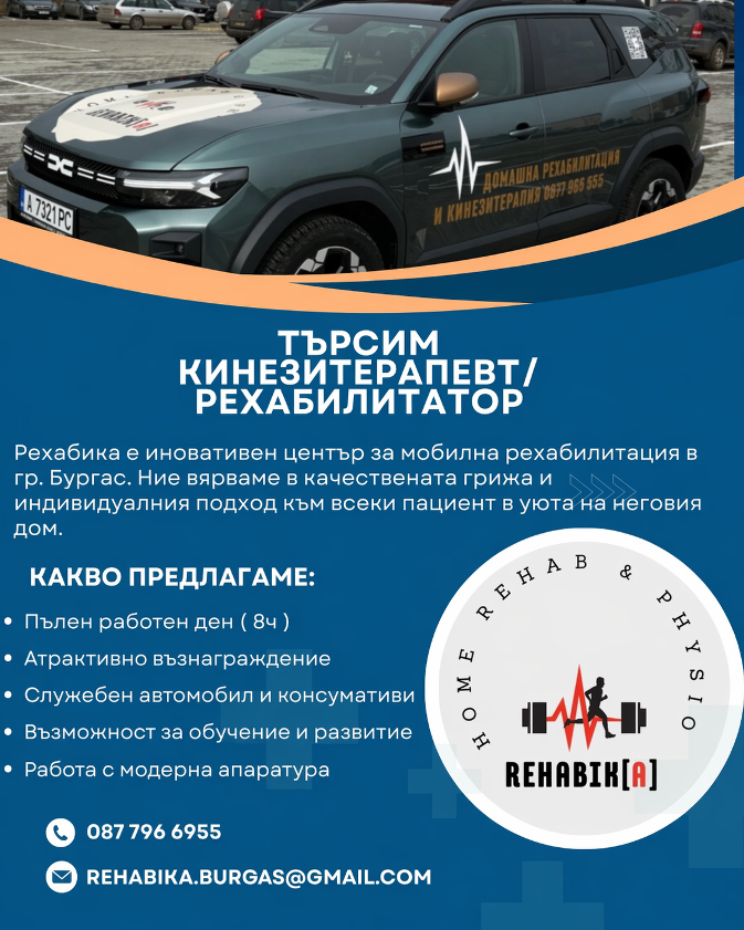 Рехабика - иновативен център за мобилна рехабилитация търси кинезитерапевт/рехабилитатор