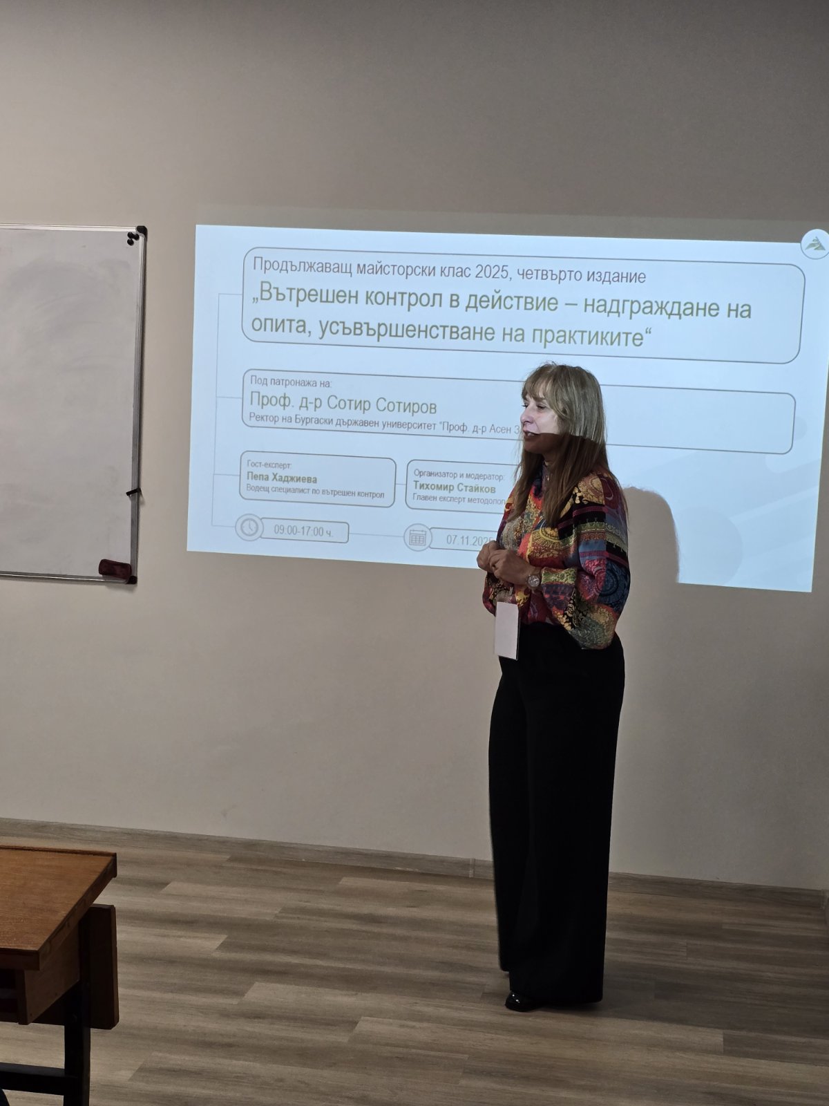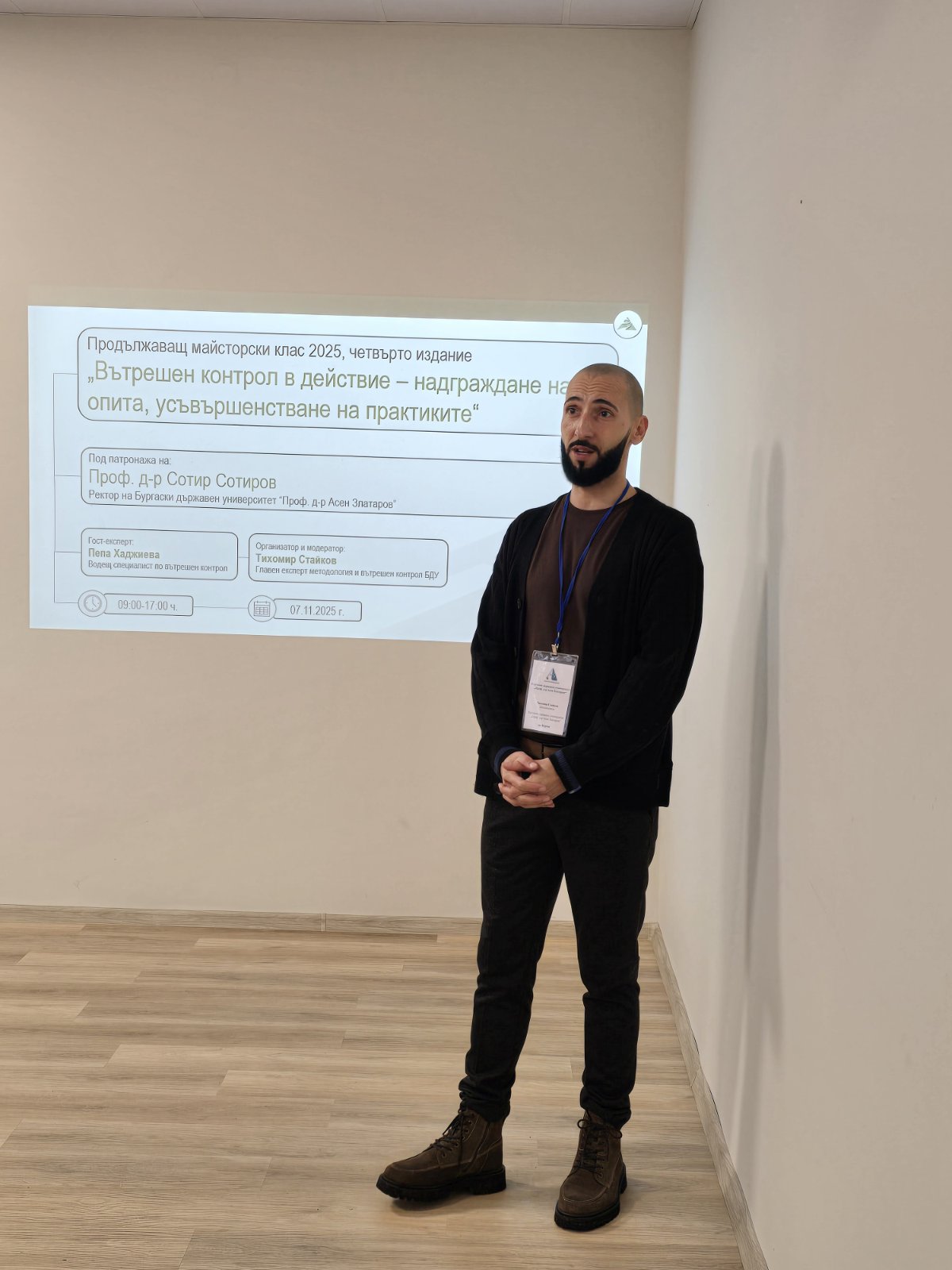 Бургаският държавен университет „Проф. д-р Асен Златаров“ проведе четвърто издание на националния форум за експерти по вътрешен контрол. След два практически семинара в предходните издания, тази година форматът е надграден – събитието е продължаващ майсторски клас „Вътрешен контрол в действие – надграждане на опита, усъвършенстване на практиките“.