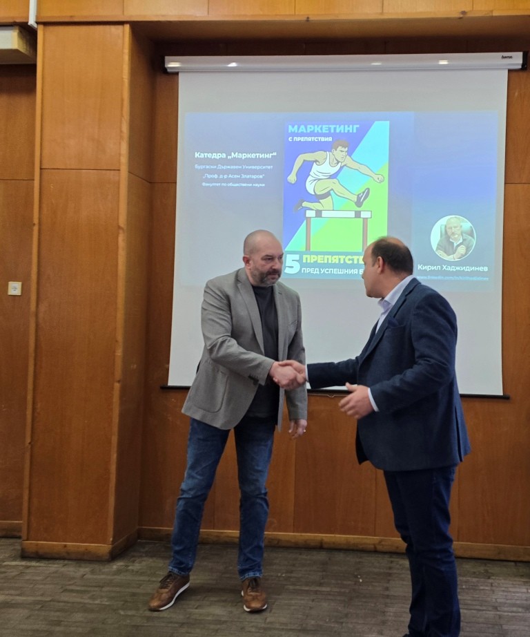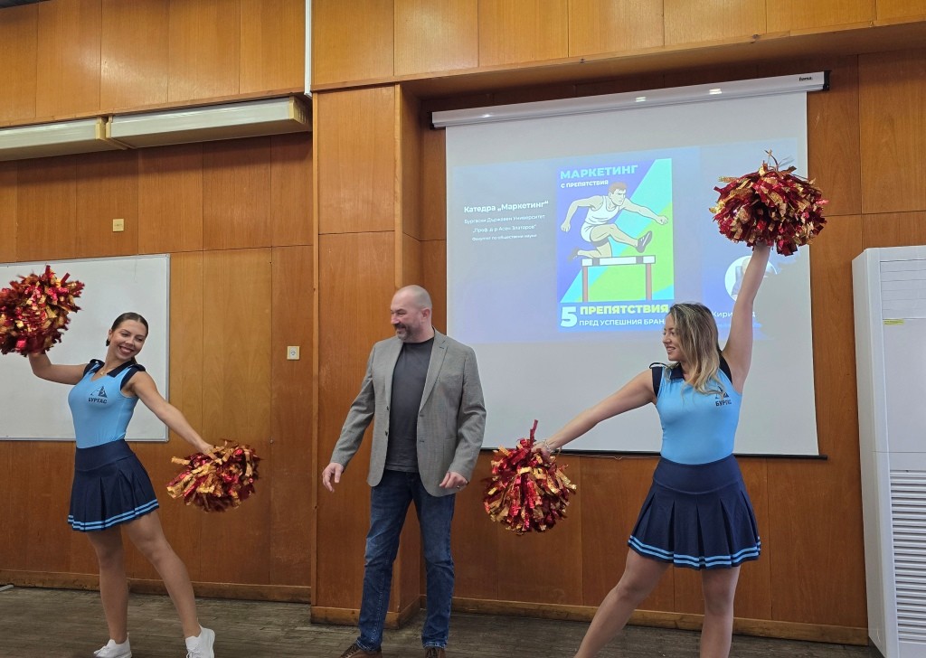 Зала 316 във Факултета по обществени науки на Бургаския държавен университет „Проф. д-р Асен Златаров“ бе препълнена по време на публичната лекция на тема „5 препятствия пред успешния бранд“. Събитието бе организирано от Катедра „Маркетинг“ към Факултета по обществени науки и привлече широк интерес сред студенти, преподаватели и гости.