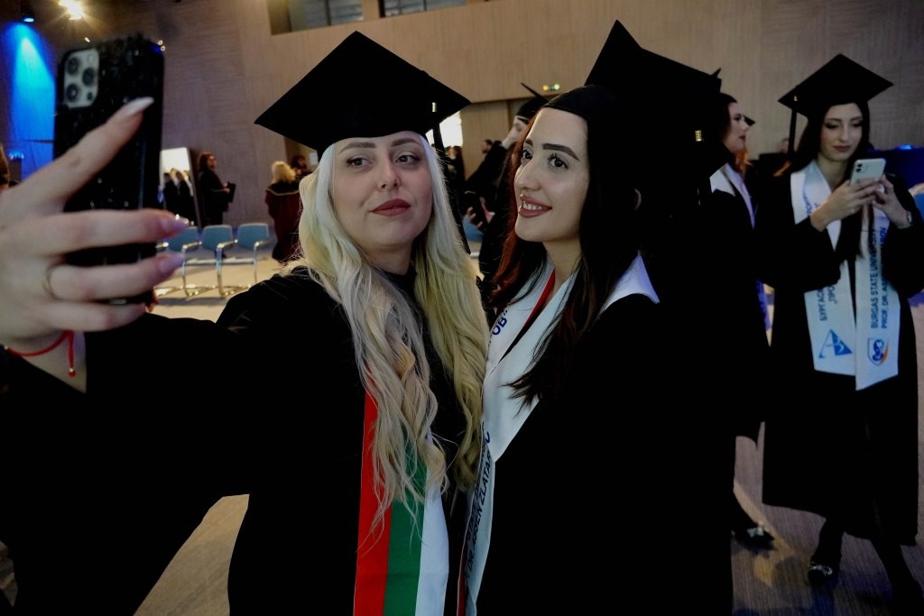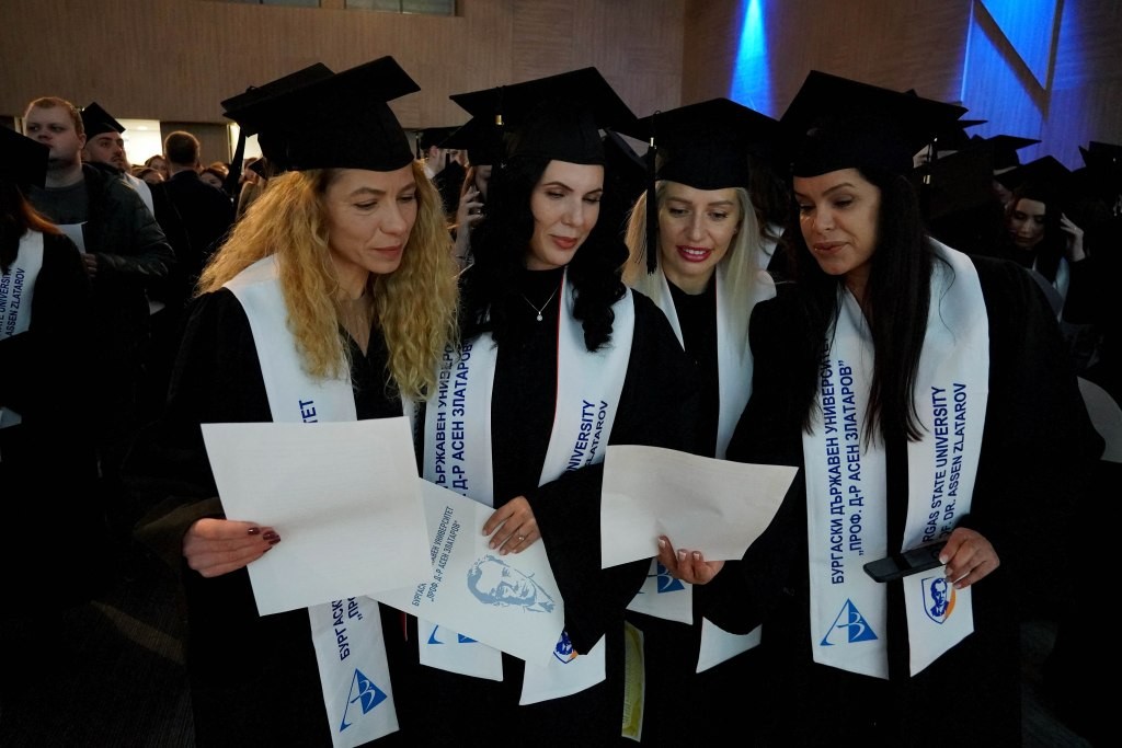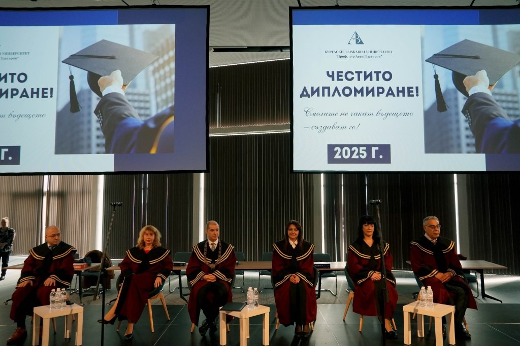 На официална церемония над 700 абсолвенти на Бургаския държавен университет получиха своите дипломи. Младите специалисти завършват обучението си в образователно-квалификационните степени „професионален бакалавър“, „бакалавър“ и „магистър“. С придобитата висока квалификация те вече са подготвени да започнат своя професионален път и да допринесат за развитието на регионалната и националната икономика.