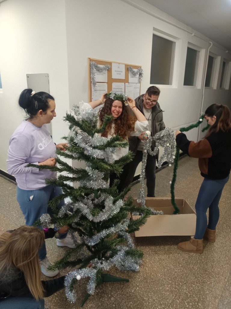 Обединени около подготовката за предстоящите празници, студентите с желание и творчество допринесоха за оформянето на предпразнична обстановка, която да внесе коледен дух и настроение за всички обучаващи се и преподаватели.
