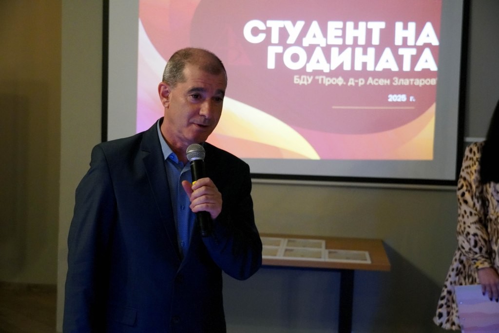 „Това е едно от най-хубавите събития, които организира Студентски съвет. То дава възможност нашите възпитаници да почувстват, че техните усилия в обучението и науката са оценени и значими. Всеки един от номинираните е по своему заслужил в своята област“, каза в приветствието си към носителите на приза ректорът на БДУ проф. д-р Сотир Сотиров.