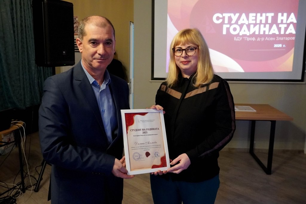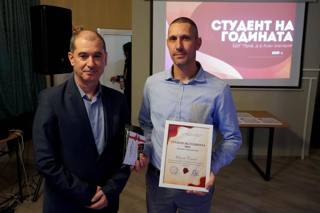 На специално празненство в Бургаския държавен университет „Проф. д-р Асен Златаров“ бяха оповестени имената на носителите на титлата „Студент на годината“. Всяко едно от основните звена във висшето училище представи свой номиниран, който, освен висок успех, се изискваше да има и научни изяви в конференции, симпозиуми, в стажантски програми и благотворителни инициативи.