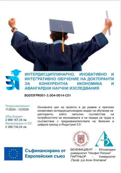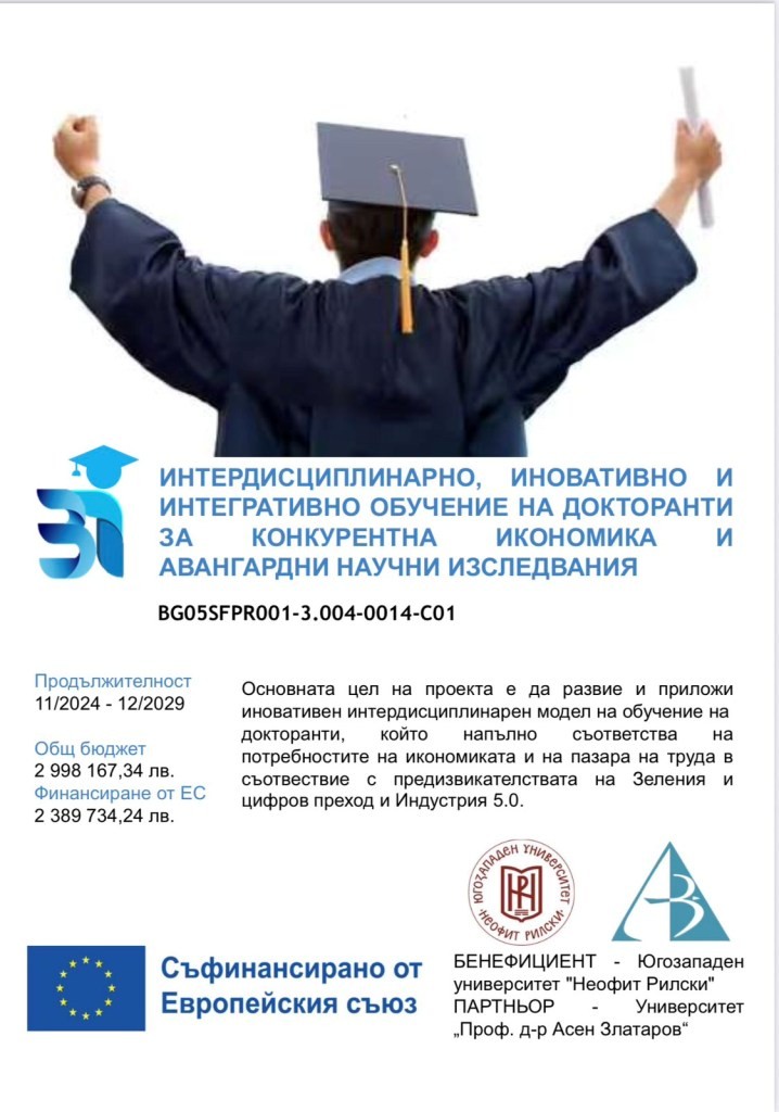 Бургаски държавен университет "Проф. д-р Асен Златаров" в партньорство с Югозападният университет "Неофит Рилски" изпълняват дейности по договор №BG05SFPR001-3.004-0014-C01.