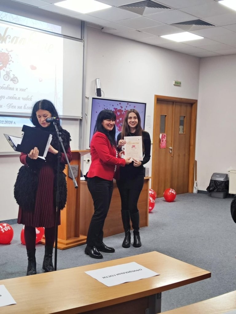 Поощрителна награда получи Радостин Георгиев, студент първи курс в специалност „Туризъм“, за творбата си „Неизживяната любов“.
