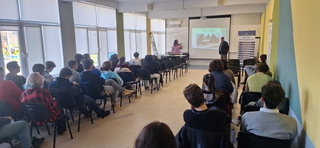 Доц. д-р Мехмед Кадир и гл. ас. Сабина Недкова от Факултета по технически науки запознаха младите хора с възможностите, които предоставя университета.
