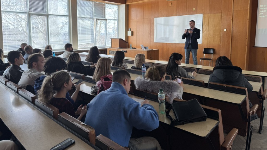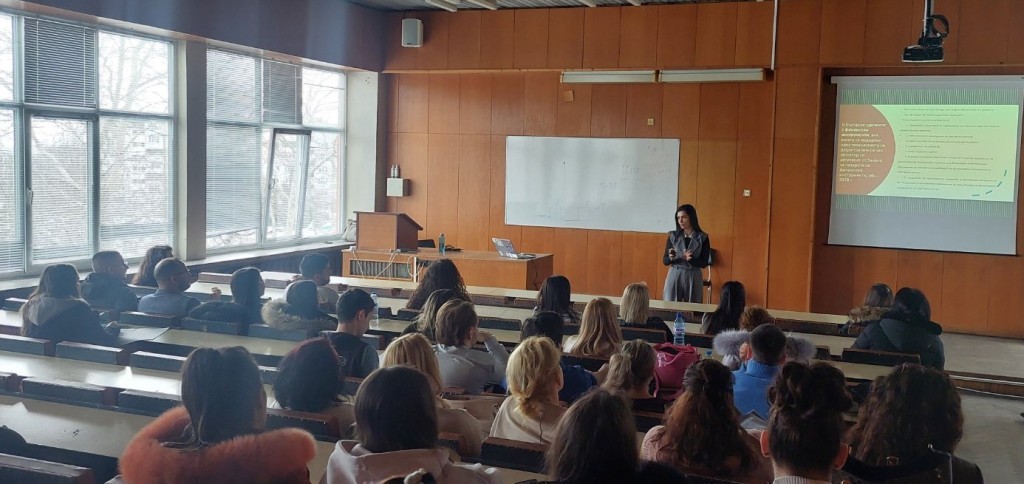 Присъстваха над 60 студенти от специалност „Стопанско управление“, както и няколко проявили интерес студенти от други специалности.