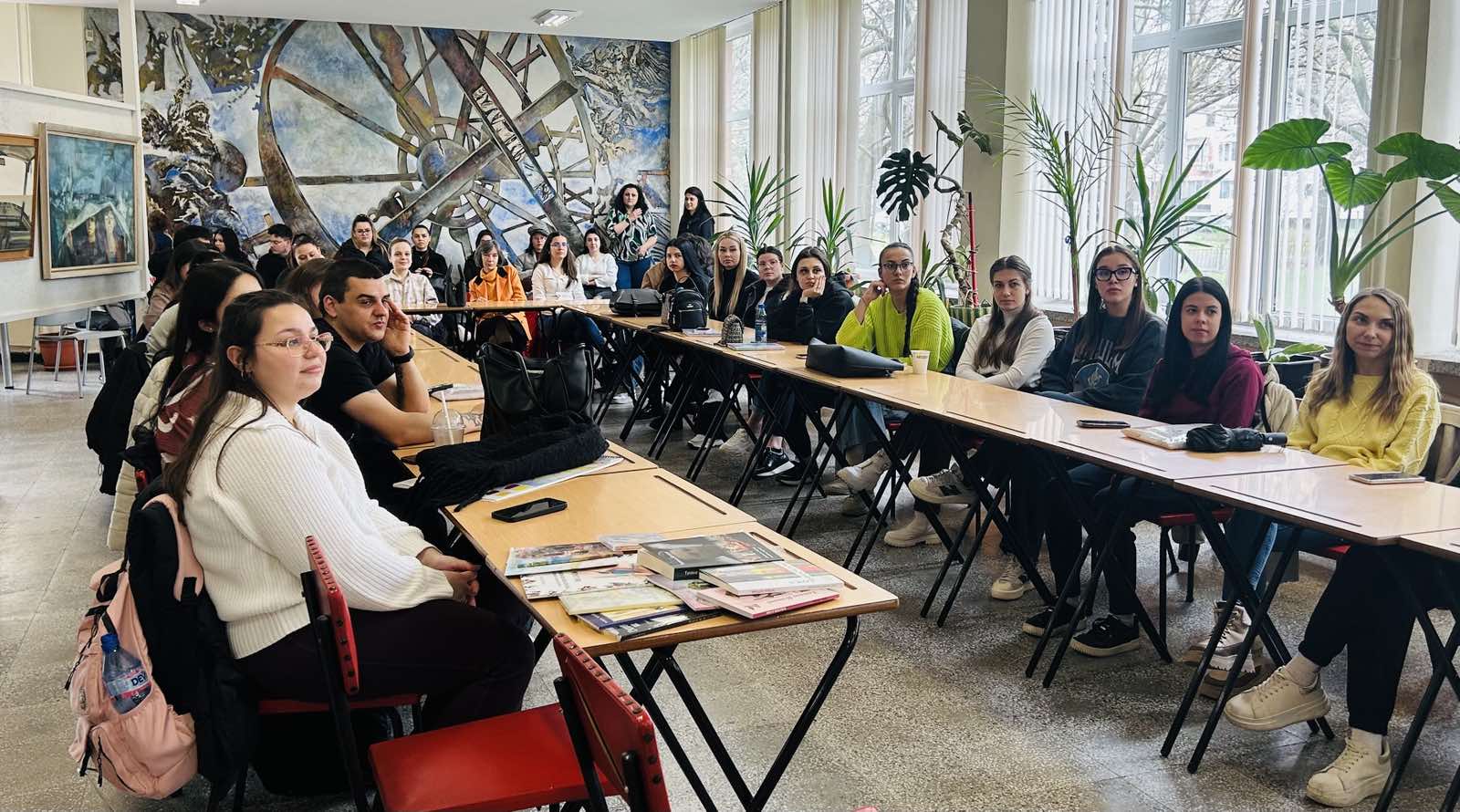 Във втората част на срещата студентите бяха поканени да се включат в творческа работилница, в рамките на която имаха възможност да приложат различни творчески литературно-езикови техники и задачи. Инициативата насърчи тяхното въображение, креативно мислене и активното им участие в творческия процес.