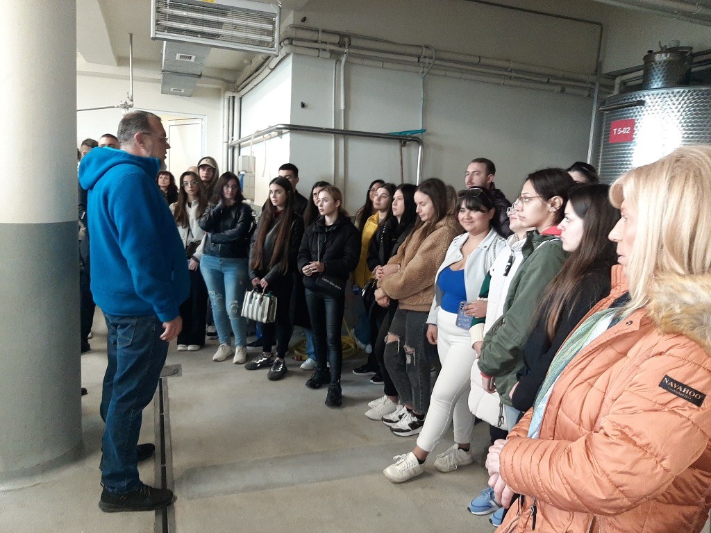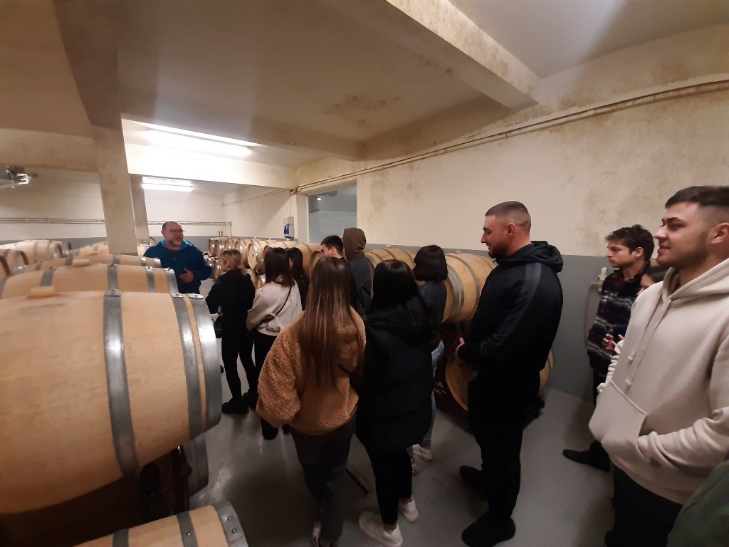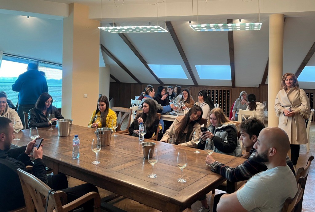 Посещението включваше лекция от главния технолог на винарната, обход на производствената база, запознаване с тънкостите на винопроизводството и дегустация на селектирани вина, придружена от професионален тренинг по винена дегустация.