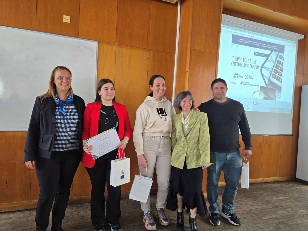 Събитието, организирано от катедра „Икономика и управление“ и Студентски съвет, бе част от Световната седмица на парите и събра ученици и студенти в интелектуална надпревара чрез платформата Kahoot.