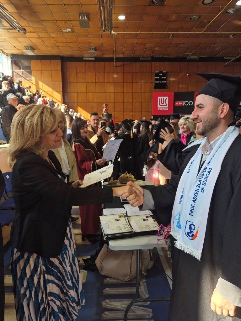 Благодарности към г-н Ангелов, който обогати познанията по хотелски мениджмънт на младите специалисти и спомогна за засилване на връзката между висше образование и туристически бизнес.