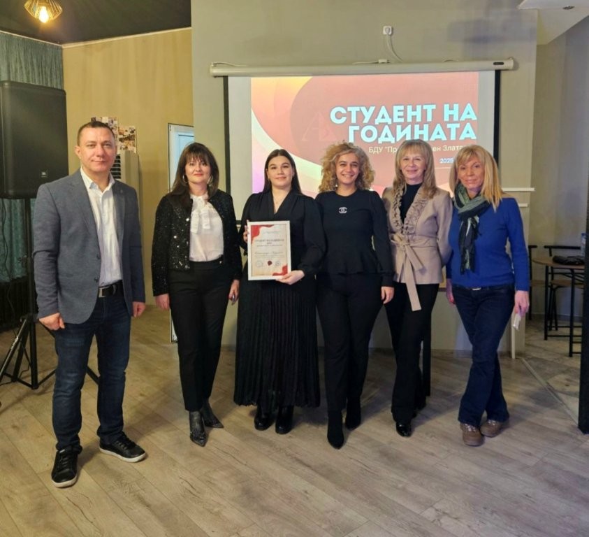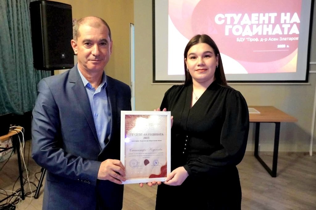 На тържествената церемония, организирана от Студентски Съвет, отличниците на университета бяха наградени лично от Ректора на БДУ – признание за тяхната висока успеваемост, активност и принос към академичната среда. Сред тях достойно се нареди и Станимира Неделчева.