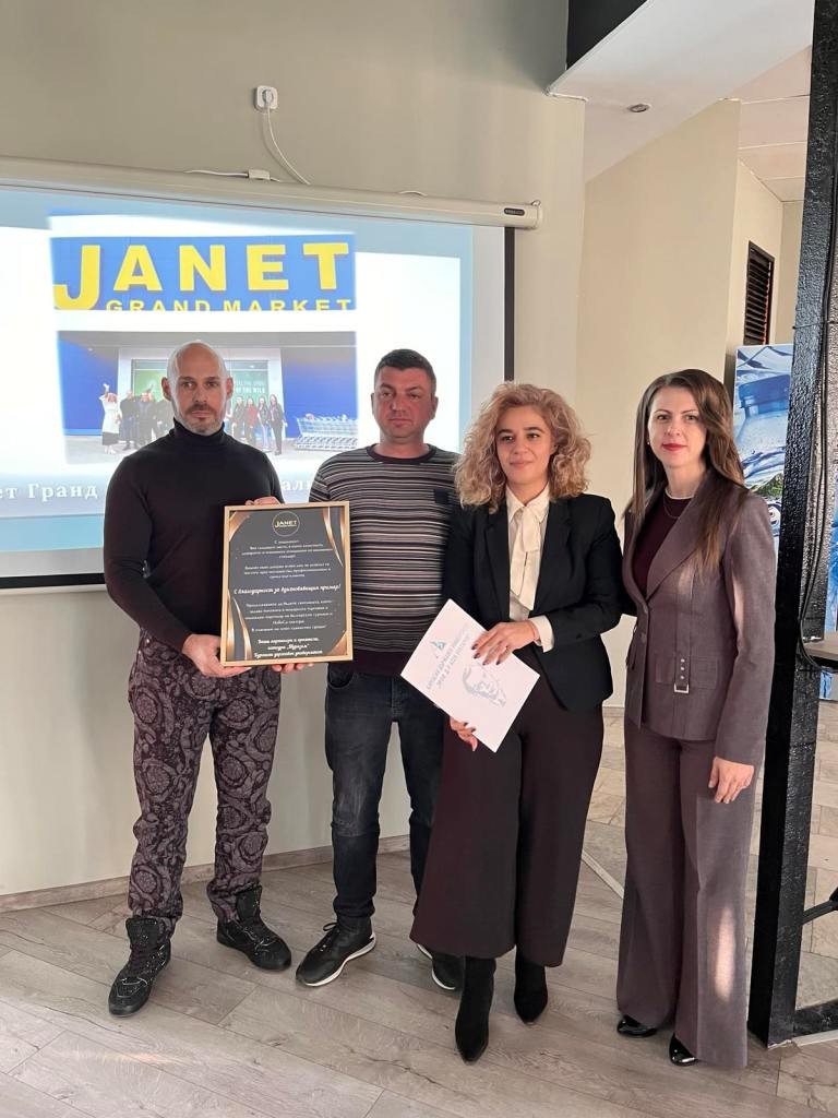 В знак на благодарност за отличното партньорство и съвместната инициатива, катедра „Туризъм“ поднесе благодарствен адрес и специален подарък на JANET Grand Market. В очакване сме на още бъдещи съвместни инициативи, които да вдъхновяват студентите и да надграждат връзката между образованието и бизнеса.